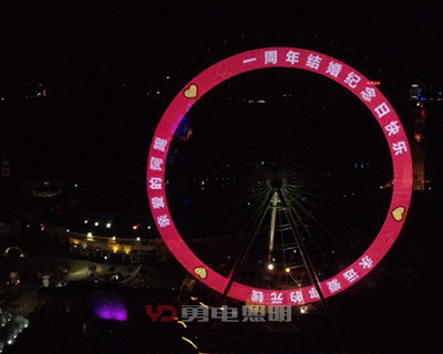 長(zhǎng)沙世界之窗摩天輪的環(huán)形LED顯示屏,采用了勇電半定制二次封裝Φ20點(diǎn)光源燈串,燈串沿著環(huán)